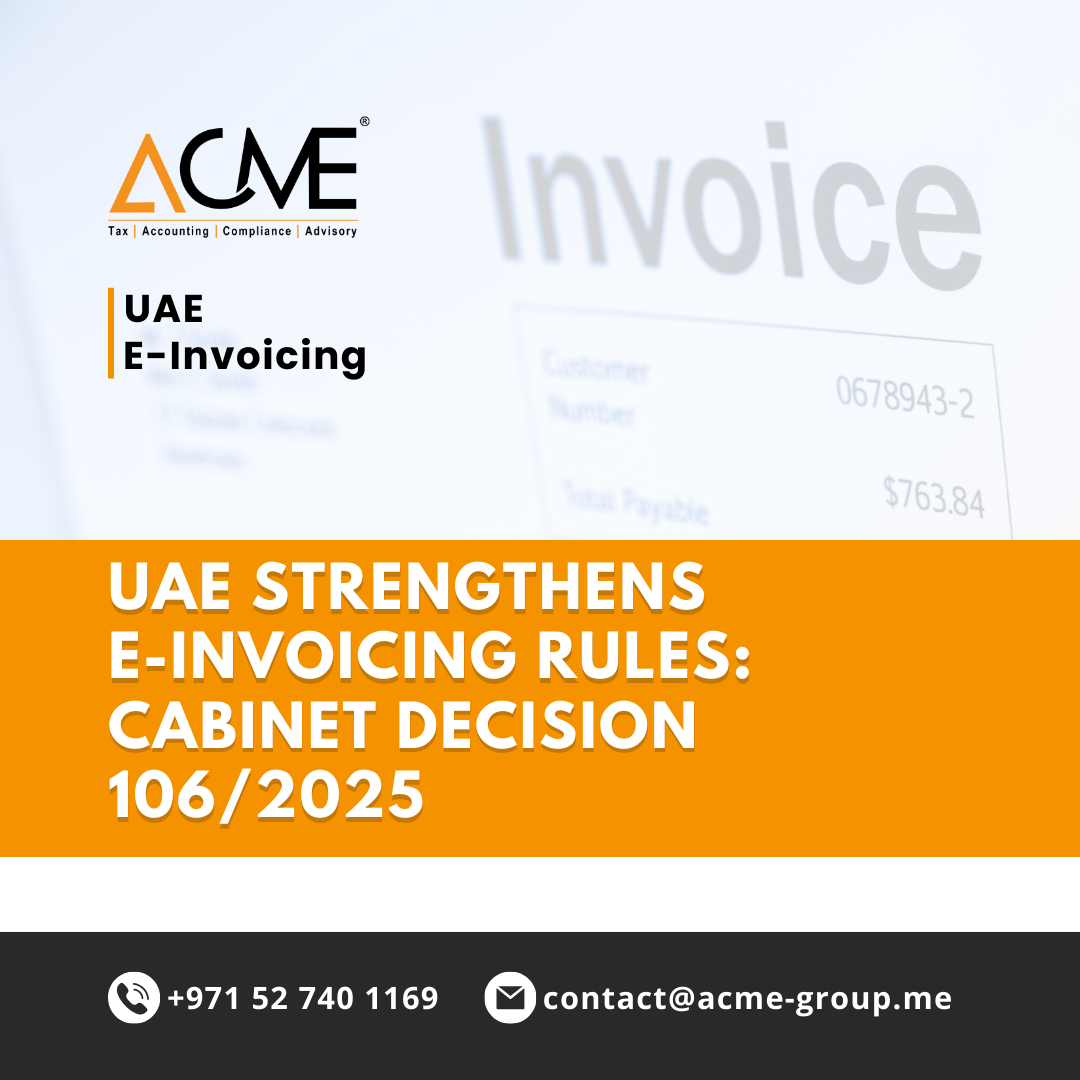 For understanding more about Corporate Tax, Transfer Pricing, VAT Updates and Corporate Tax as well as VAT Registrations reach out to us on: contact@acme-group.me| +971 52 740 1169